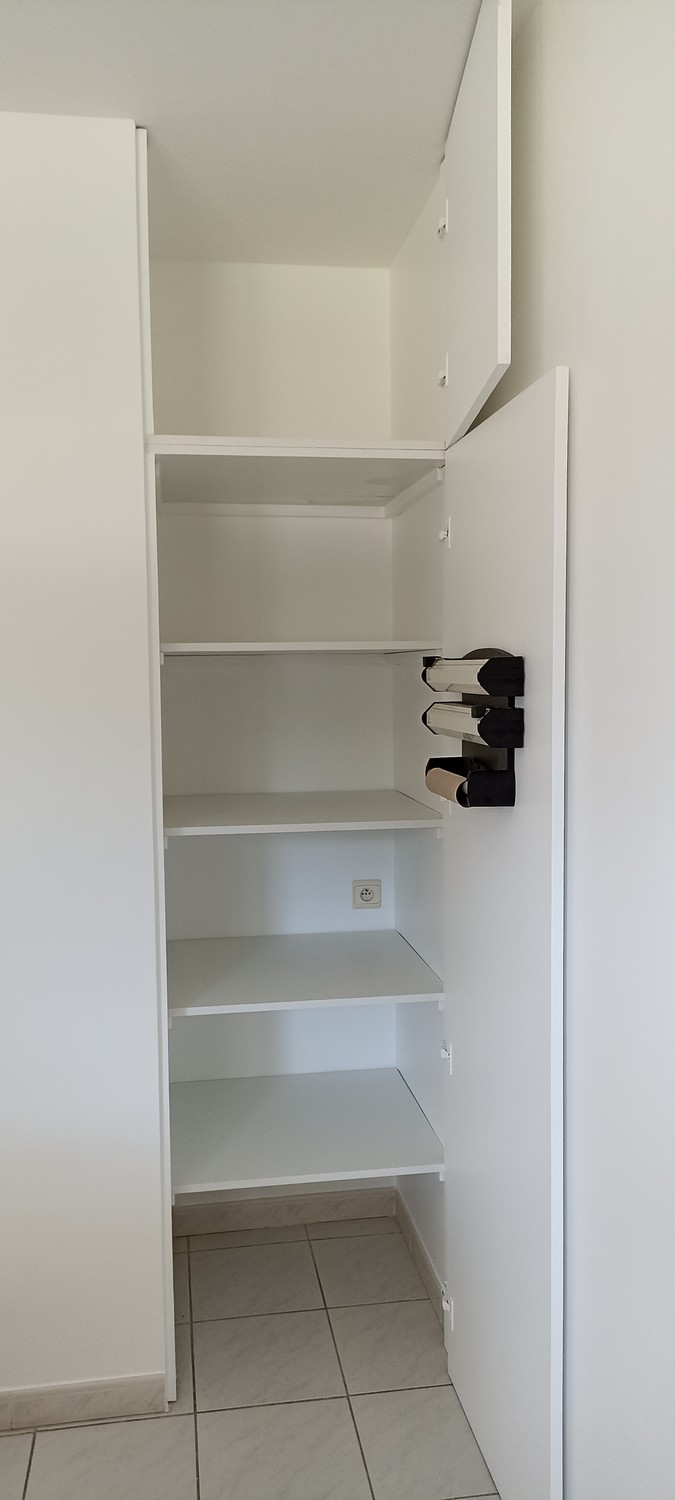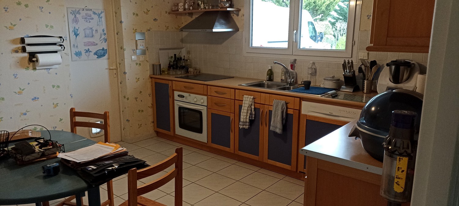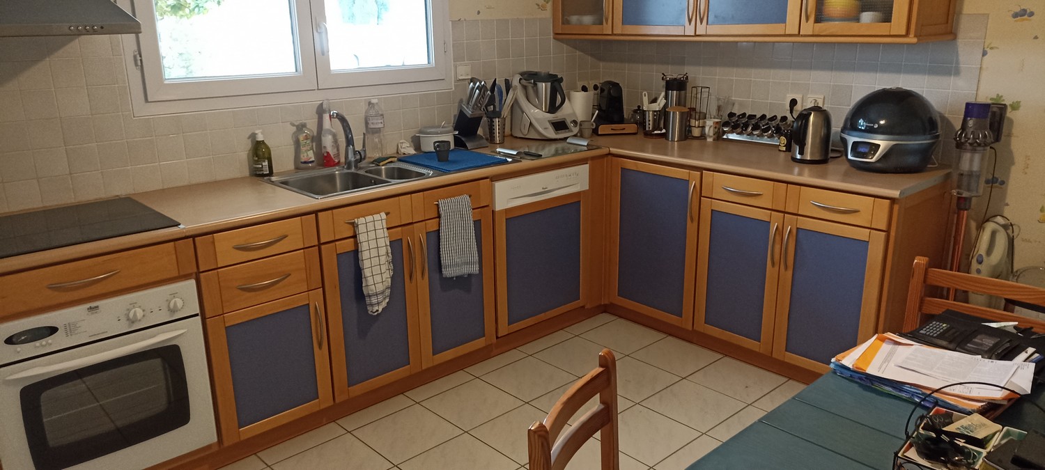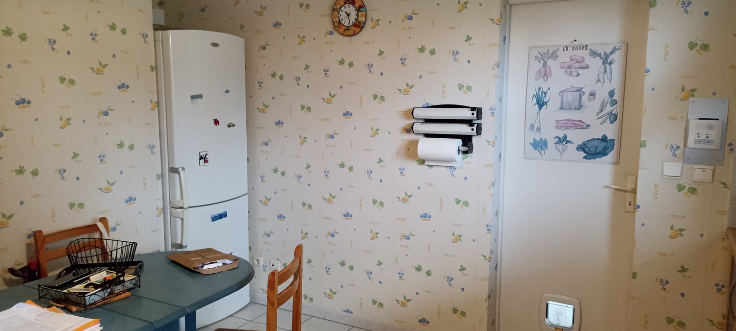 Face a une cuisine typique des années 90 dont les meubles étaient en bon état nous avons choisi de laquer les facades en noirs et de créer un ilot central. L’ensemble est lié avec un plan de travail en hêtre massif. L’ergonomie de la cuisine a été repensée : le frigo est déplacé dans le prolongement du plan de travail. Un grand placard "toute hauteur" prends sa place. |